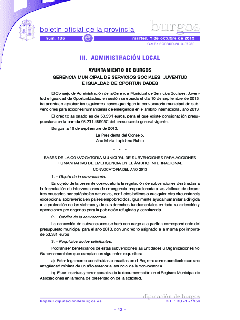 C.V.E.: BOPBUR201307280III. ADMINISTRATION LOCAL