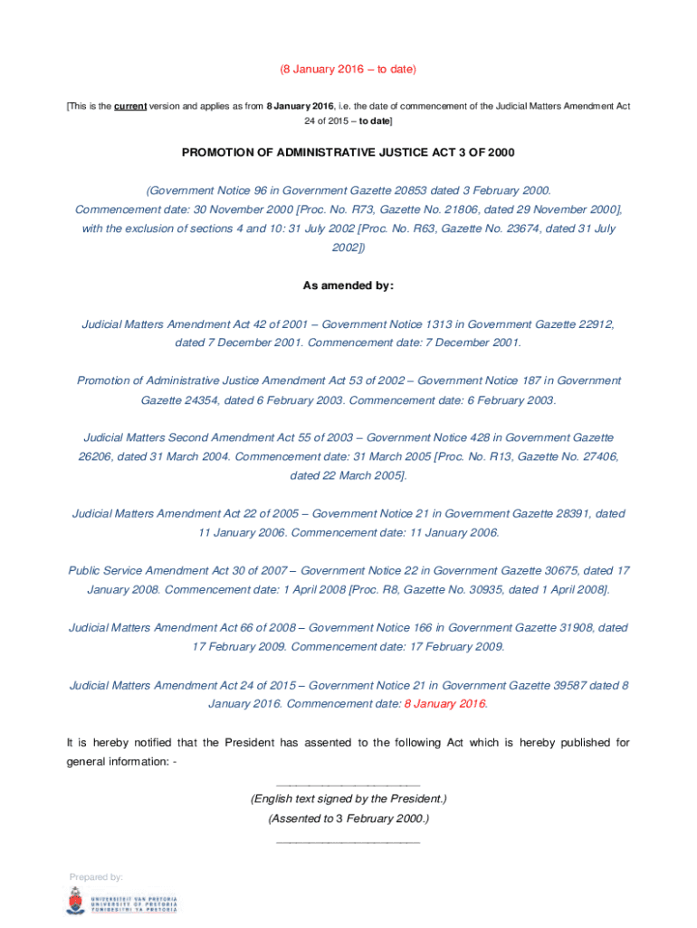 (8 January 2016 to date) [This is the current version and applies as from 8 January 2016, i.e. the date of commencement of the Judicial Matters Amendment Act 24 of 2015 to date]PROMOTION OF ADMINISTRATIVE