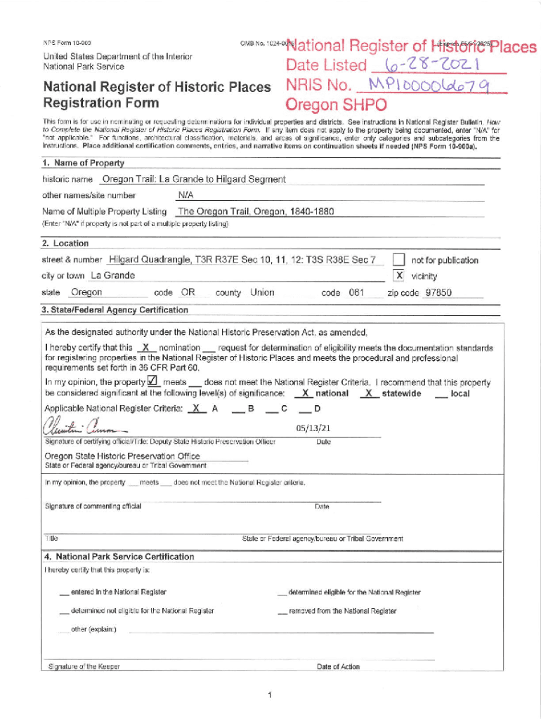 NPS Form 10900OMB No. 10240018(Expires 5/31/2025)Oregon Trail: La Grande to