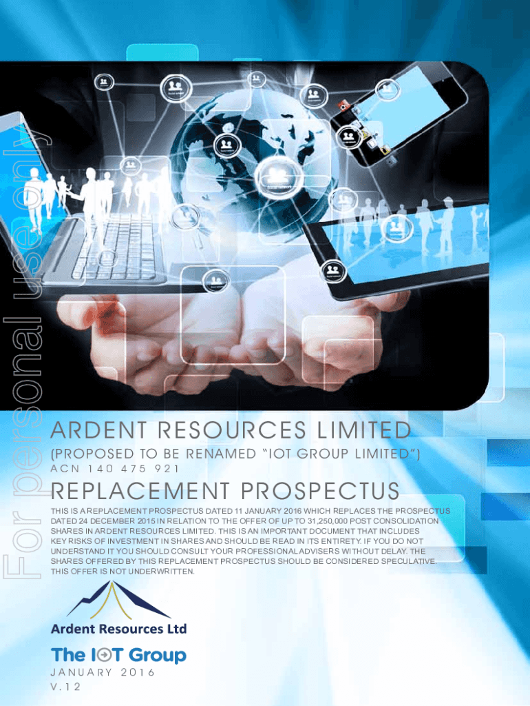 For personal use onlyARDENT RESOURCES GARDEN T RE SO U R C E S L I M I T E D (Proposed to be renamed IOT G RO UP LI MIT E D) ACN 140 475 921REPLA CEMENT T P R O S P E C T U S this is a replacement