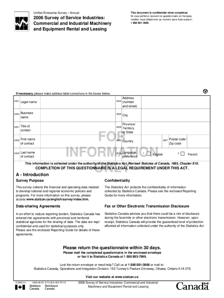 This document is confidential when completed. Si vows Perez reservoir CE questionnaire en Francis, vehicle nous telephoner AU humors sans fries servant : 1 888 8813666. Unified Enterprise Survey Annual2006