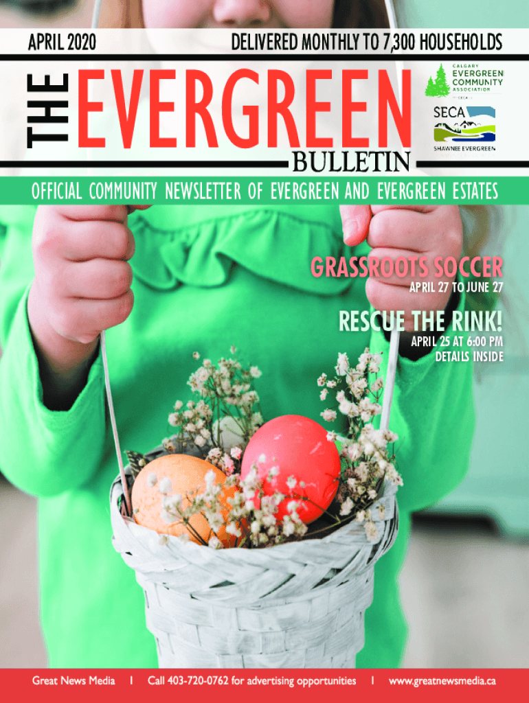 APRIL 2020DELIVERED MONTHLY TO 7,300 HOUSEHOLDSTHEEVERGREEN BULLETINOFFICIAL COMMUNITY NEWSLETTER OF EVERGREEN AND EVERGREEN ESTATESGRASSROOTS SOCCER APRIL 27 TO JUNE 27RESCUE THE RINK!APRIL 25 AT