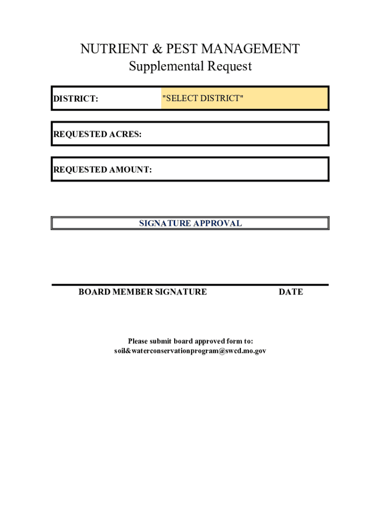 Get the free NUTRIENT PEST MANAGEMENT SUPPLEMENTAL REQUEST FORM 2020.xlsx