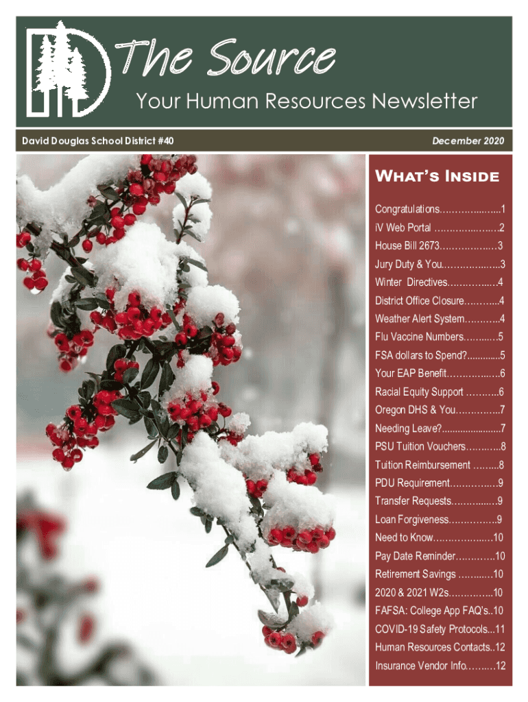 The Source Your Human Resources Newsletter David Douglas School District #40December 2020Congratulations......1 iv Web Portal ....2 House Bill 2673.3 Jury Duty & You.....3 Winter Directives.4 District