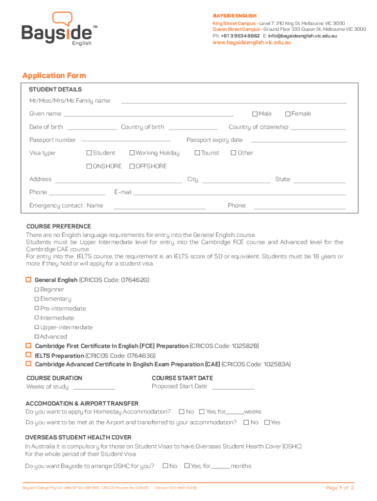 pH: +61 3 9534 8862 E: info@baysideenglish.vic.edu.auwww.baysideenglish.vic.edu.auApplication