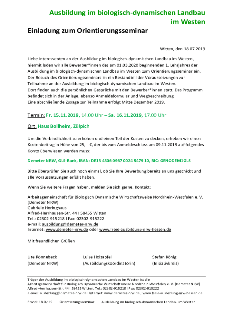Liege Interessenten a Ausbildung I'm biologischdynamischen Landau I'm Western,