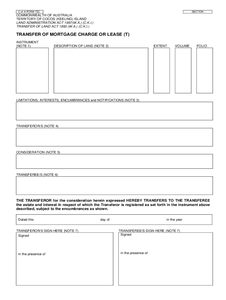 C of A FORM T3CSECTIONCOMMONWEALTH OF AUSTRALIA TERRITORY OF COCOS (KEELING) ISLAND LAND ADMINISTRATION ACT 1997(W.A.) (C.K.I.) TRANSFER OF LAND ACT 1893 (W.A.) (C.K.I.)TRANSFER OF MORTGAGE CHARGE