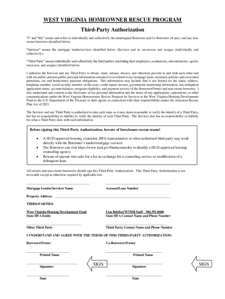 HOMEOWNERS RESCUE PROGRAM APPLICATION The West Virginia Homeowner Rescue Program (VHR) is a housing related program funded by the U.S. Department of Treasury to help West Virginia homeowners facing