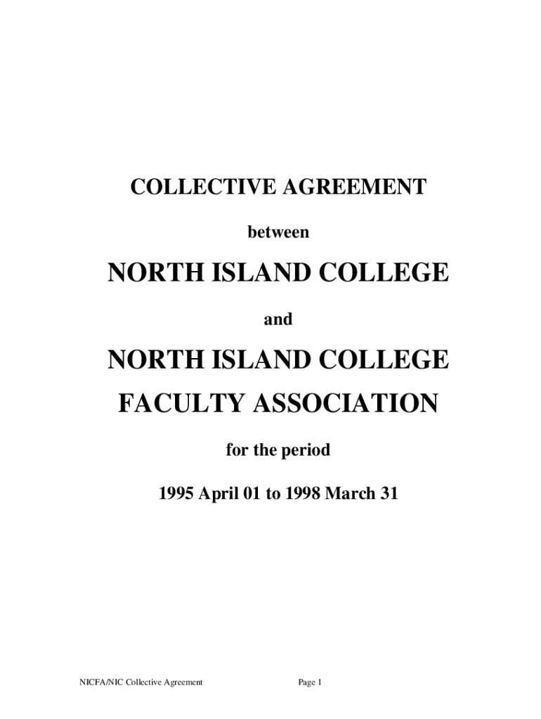 COLLECTIVE AGREEMENT betweenNORTH ISLAND COLLEGE north ISLAND COLLEGE FACULTY ASSOCIATION for the period 1995 April 01 to 1998 March 31NICFA/NIC Collective Agreement Page 1Table of Contents SectionPage1.PRELIMINARY
