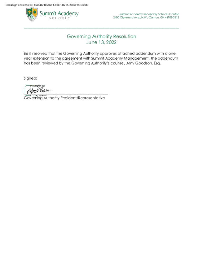 DocuSign Envelope ID: 457CD719ACF446EFB7152B63F9DE588E 01D9015F2DD8485E822BCB9B18505E73 BF6E734E75A04A39850F021FEA29D965Summit Academy Secondary School Canton 2400 Cleveland Ave., N.W., Canton, OH