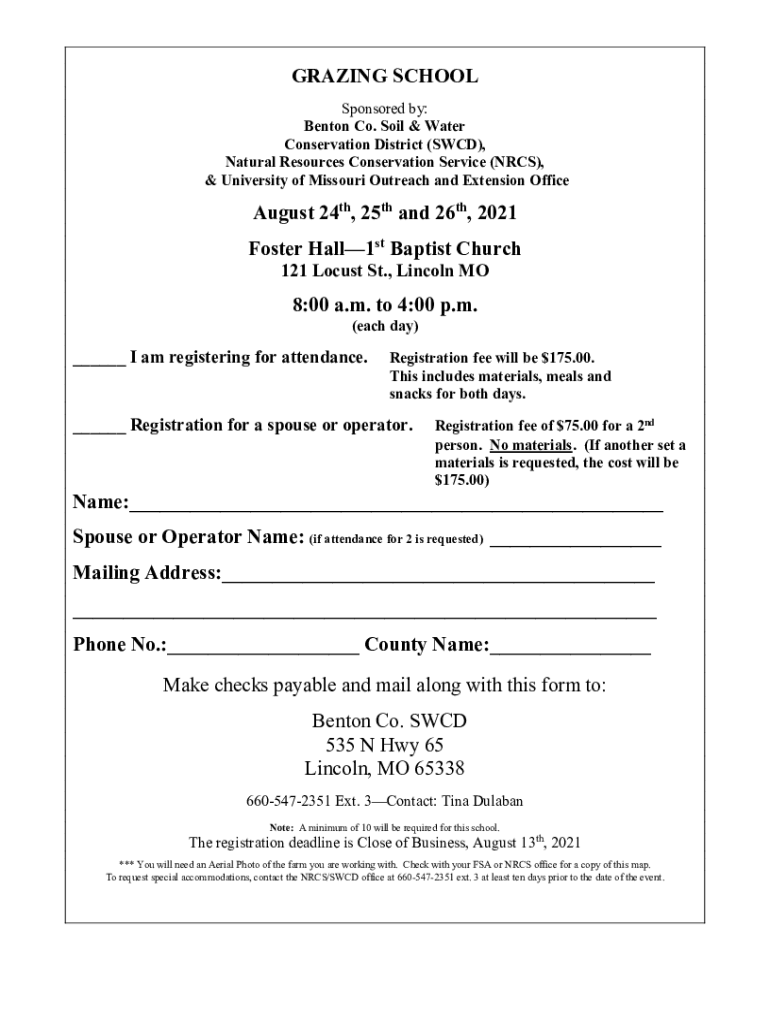 GRAZING SCHOOL Sponsored by: Benton Co. Soil & Water Conservation District (SACD), Natural Resources Conservation Service (ARCS), & University of Missouri Outreach and Extension Office August 24th,