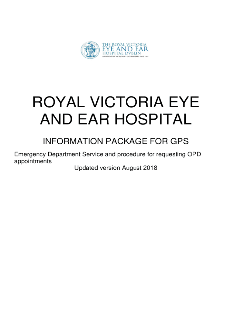 ROYAL VICTORIA EYE AND EAR HOSPITAL INFORMATION PACKAGE FOR GPS Emergency Department Service and procedure for requesting OLD appointments Updated version August 2018CONTENTS G.P. LIAISON SERVICE