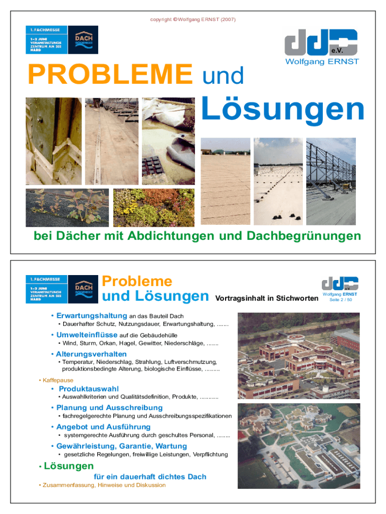 Copyright Wolfgang ERNST (2007)e.V.PROBLEM Wolfgang ERNSTLsungenbei Ocher MIT Abdichtungen UND DachbegrnungenProbleme