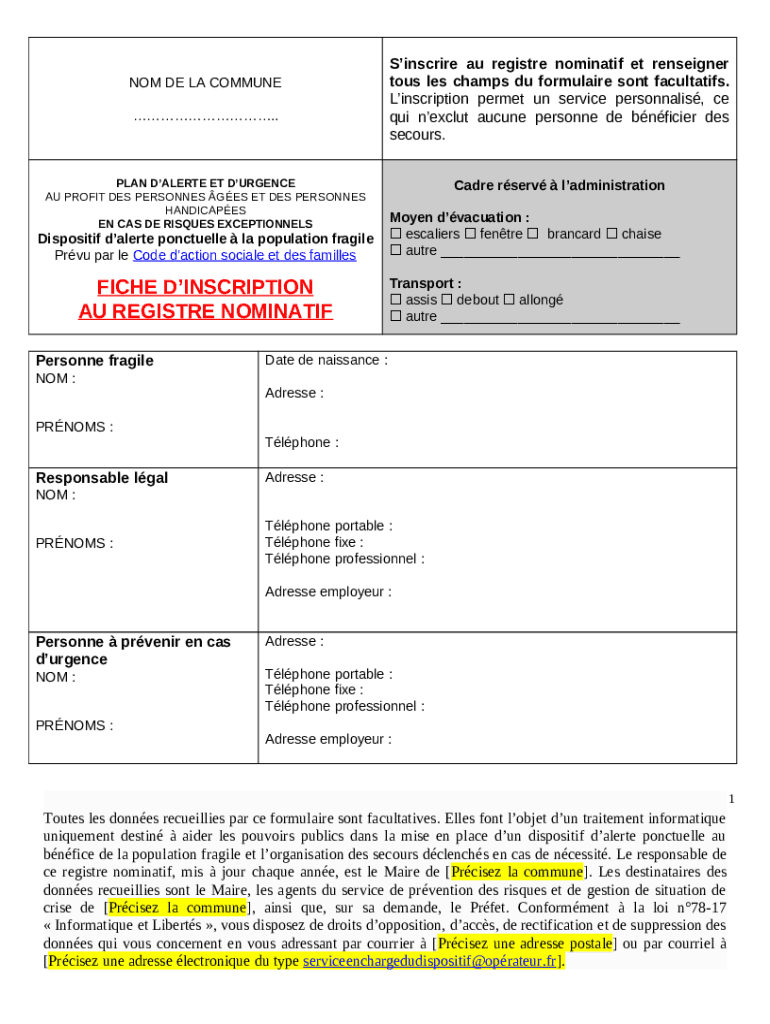 How to fill out plan d'alerte et d'urgence - au profit des personnes ages