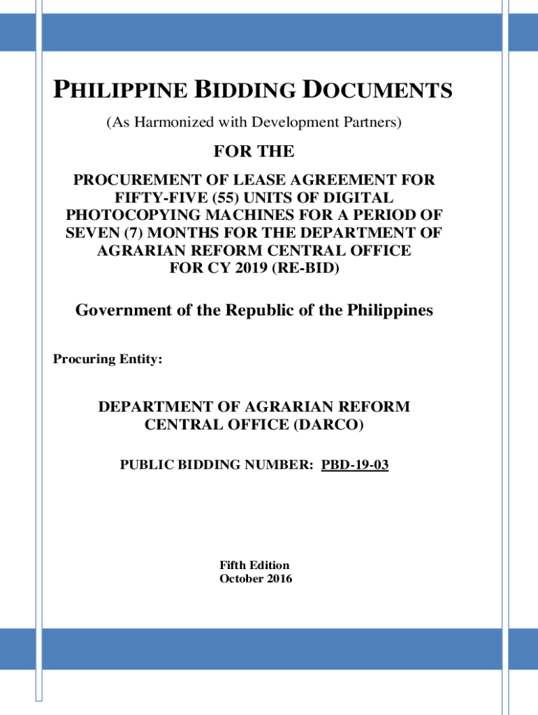 PHILIPPINE BIDDING DOCUMENTS (As Harmonized with Development Partners)FOR THE PROCUREMENT OF LEASE AGREEMENT FOR FICTIVE (55) UNITS OF DIGITAL PHOTOCOPYING MACHINES FOR A PERIOD OF SEVEN (7) MONTHS