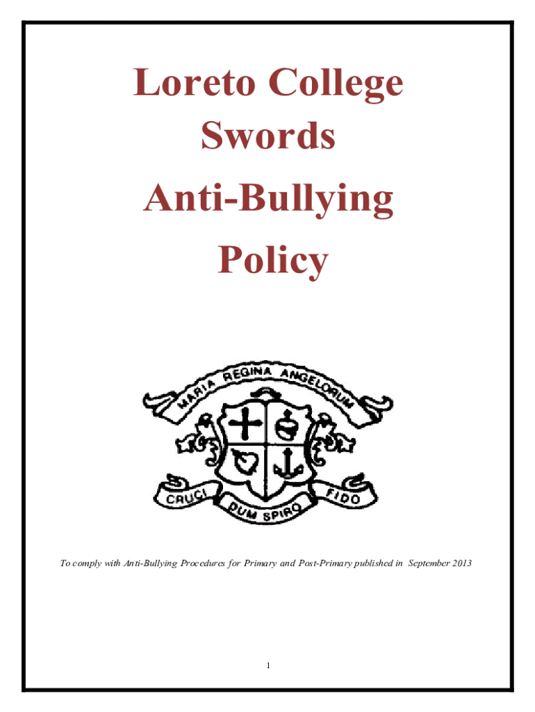 Policy comply with AntiBullying Procedures for Primary and Pre-primary published in September 20131Loreto College Swords AntiBullying Policy(2017)1. In accordance