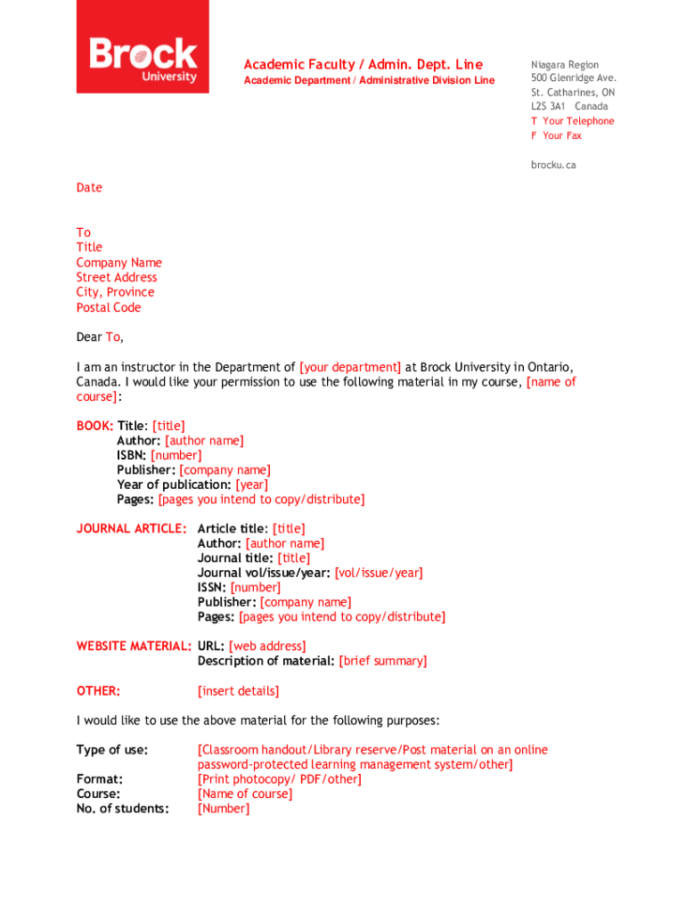 Academic Faculty / Admin. Dept. Line Academic Department / Administrative Division Line Niagara Region 500 Glen Ridge Ave. St. Catharines, ON L2S 3A1 Canada T Your Telephone F Your Fax Brock. Caudate