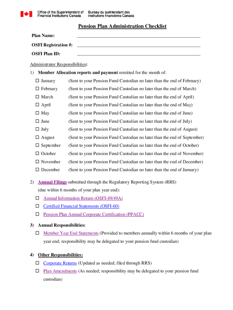 Get the free Pension Plan Administration Checklist - Final