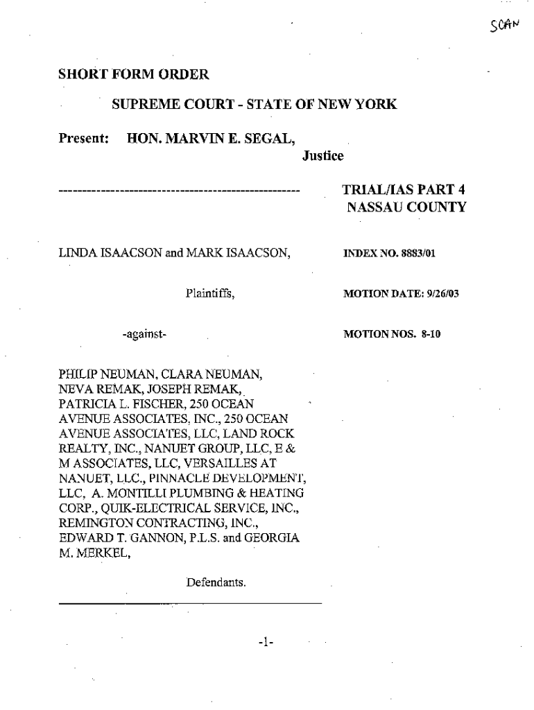 Get the free HON. MARVIN E. SEGAL, Justice SHORT FORM ORDER ... - decisions courts state ny
