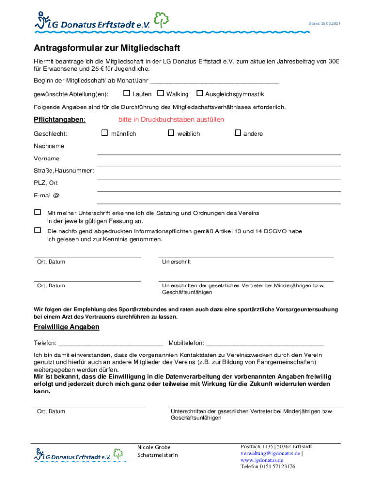 Hermit barrage ICH die Mitgliedschaft in her LG Donates Ronstadt e.V. sum aktuellen Jahresbeitrag on 30