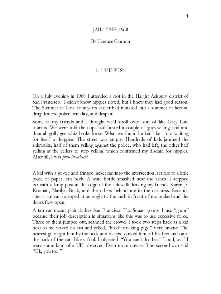 1JAIL TIME, 1968 By Terence Cannon1. THE Boston a July evening in 1968 I attended a riot in the Height Ashbury district of San Francisco. I didn't know hippies rioted, but I knew they had good reason.