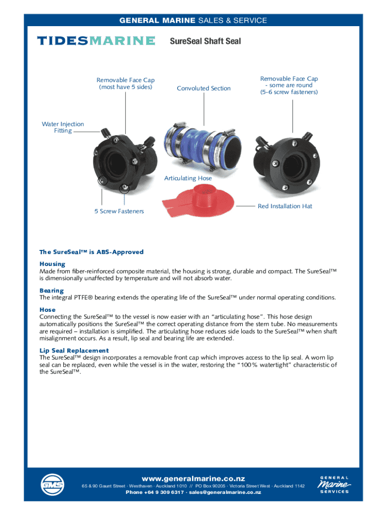 GENERAL MARINE SALES & SERVICESelfAligning Shaft Seals Surreal Shaft SealPRODUCT OVERVIEWRemovable Face Cap (most have 5 sides)SureSealConvoluted SectionRemovable Face Cap some are round (56 screw