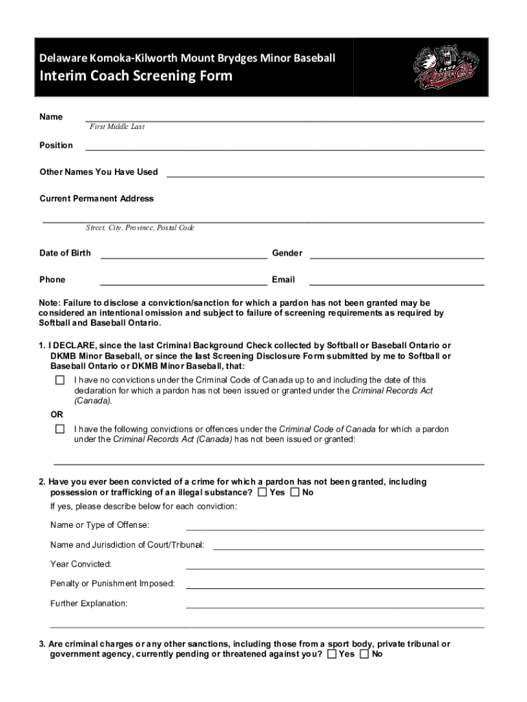 The interim coach screening form is a document that needs to be filled out to ensure proper screening of coaches.
