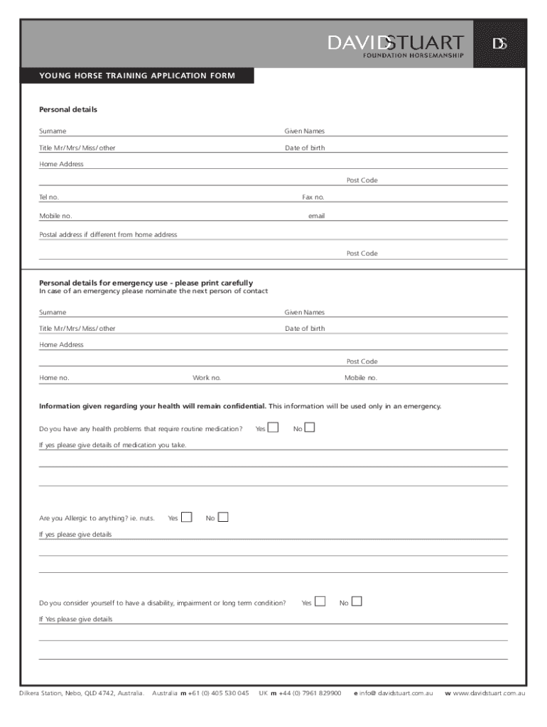 Get the free Young Horse Course Application Form v1 - David Stuart