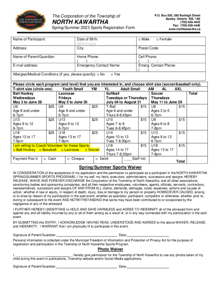 Bring the completed forms to the North Kawartha Municipal Office during their regular business hours.