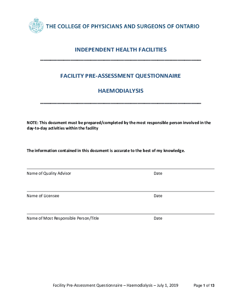 INDEPENDENT HEALTH FACILITIESFACILITY PREASSESSMENT QUESTIONNAIRE