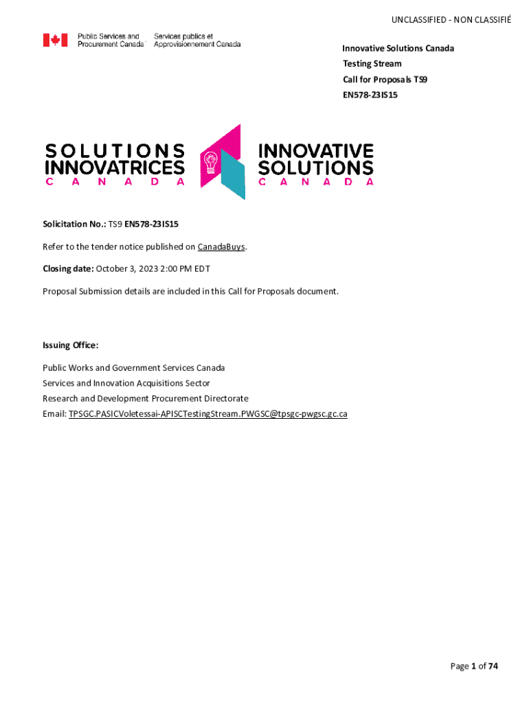 Get the free Innovative Solutions Canada Testing Stream Call for ...