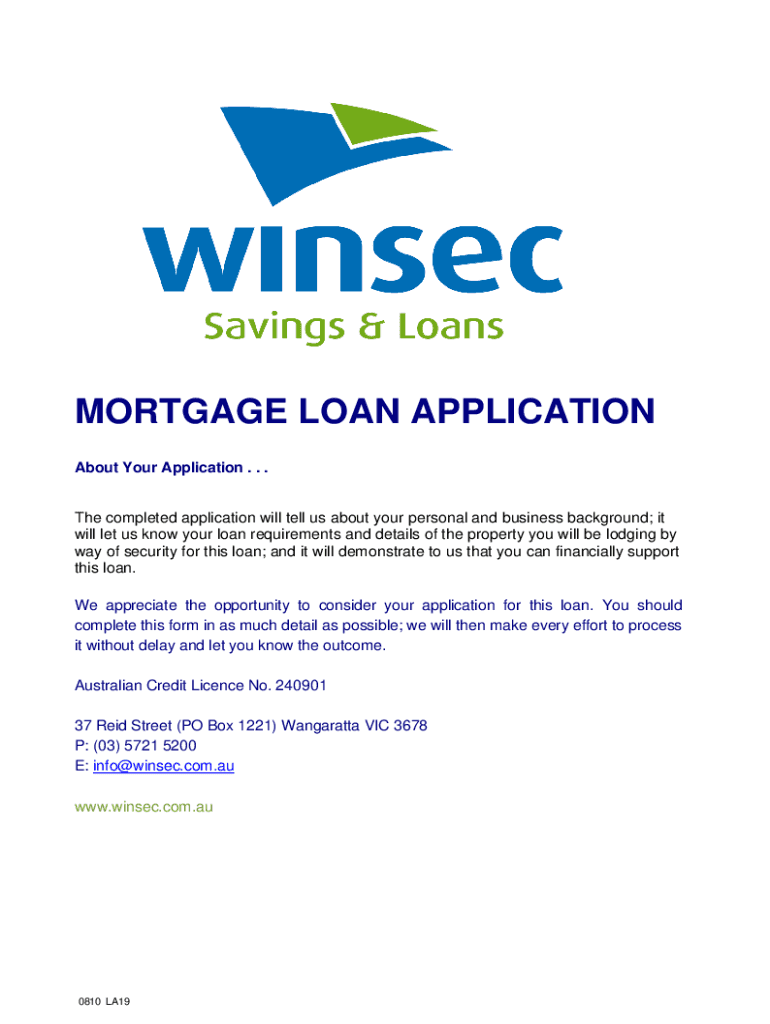 MORTGAGE LOAN APPLICATION About Your Application. . . The completed application will tell us about your personal and business background; it will let us know your loan requirements and details of