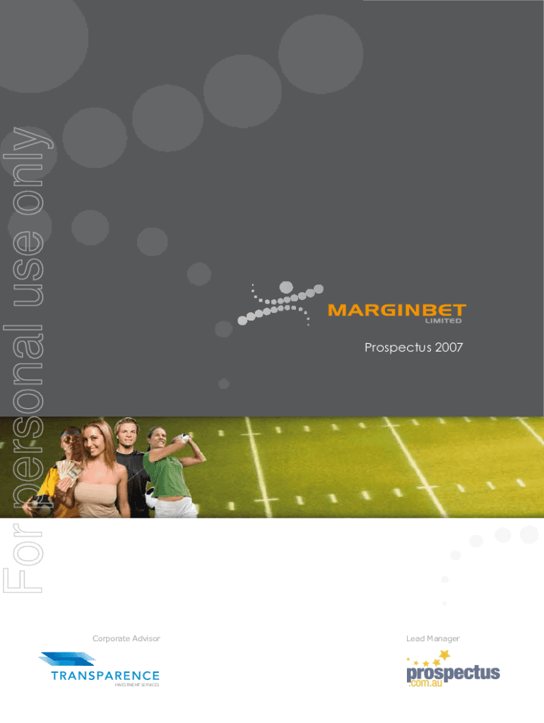 For personal use onlyProspectus 2007Corporate AdvisorINVESTMENT SERVICESLead Manager personal use only