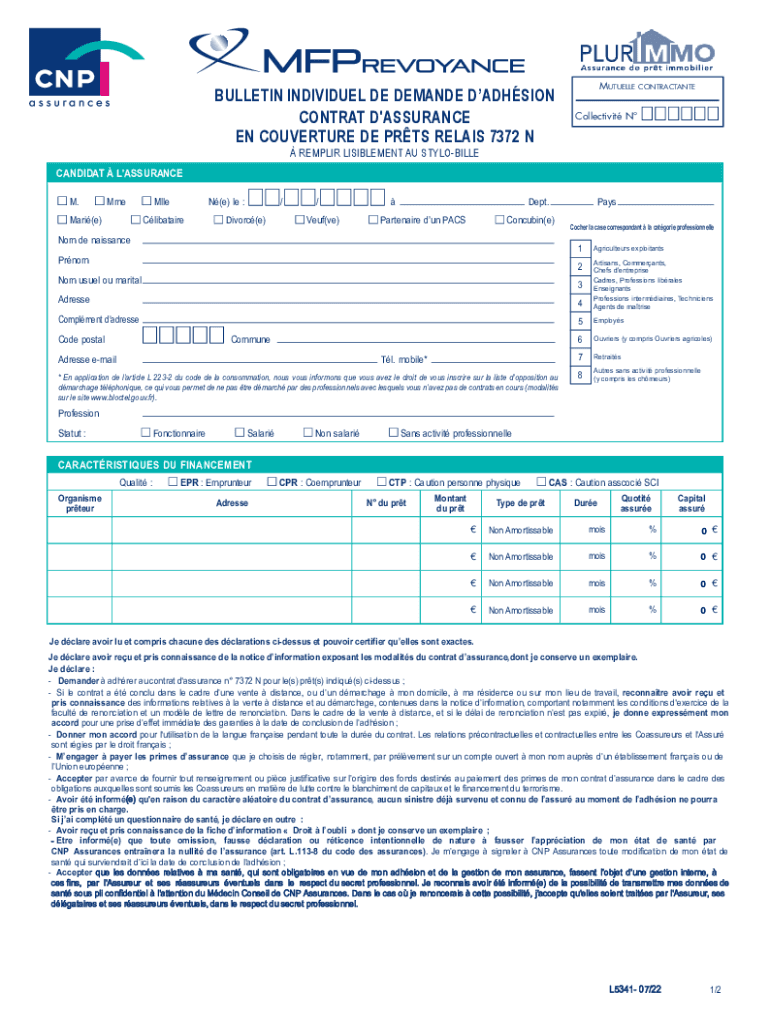 Obtenir le gratuit bulletin individuel de demande d'adhsion contrat d'assurance ...