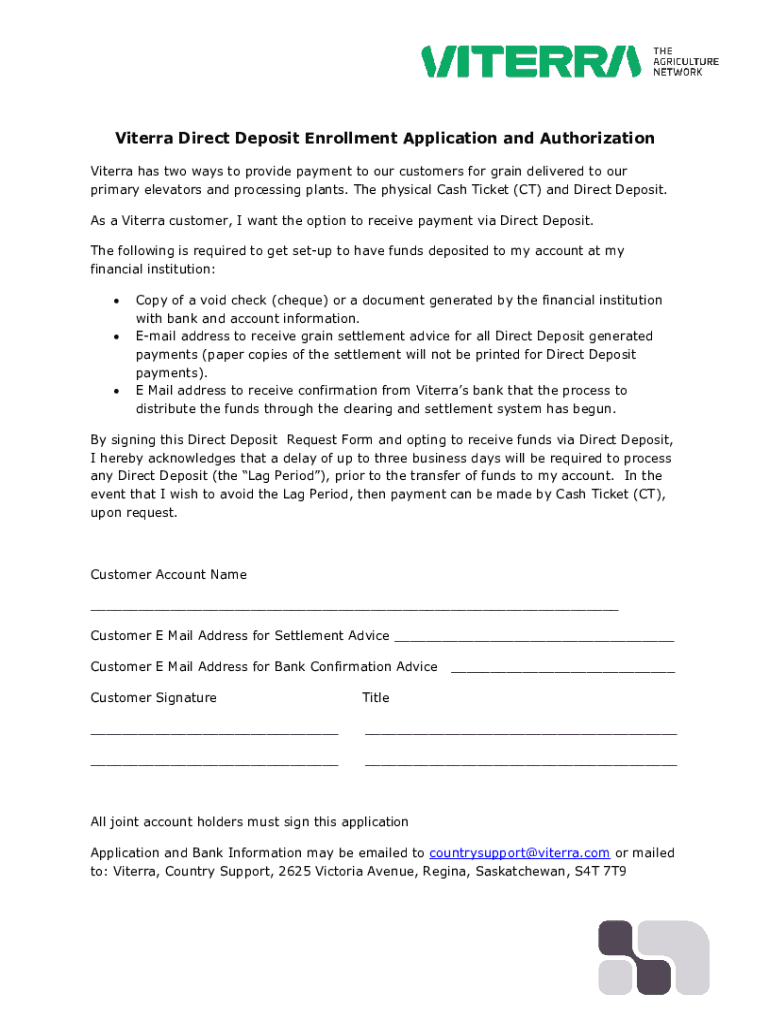 Get the free Viterra Direct Deposit Enrollment Application and ...