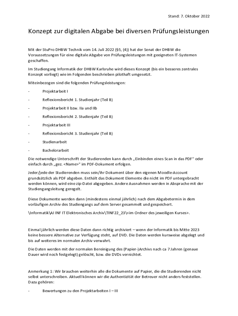 Stand: 7. October 2022Konzept our digitalen Algae BEI diverse Prfungsleistungen