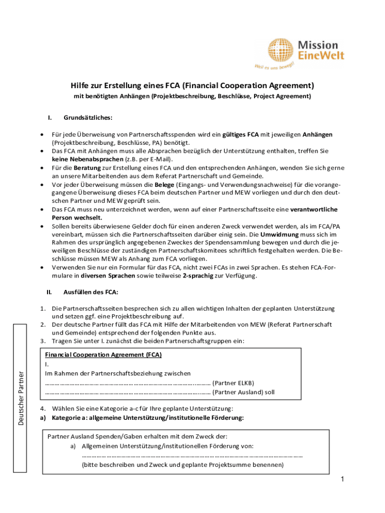 Holen Sie sich kostenlos Hilfe zur Erstellung eines FCA (Financial Cooperation Agreement)