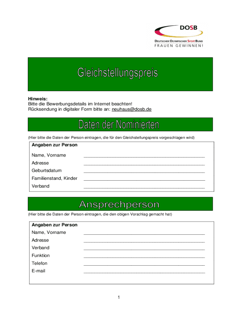 Hines: Bitter die Bewerbungsdetails I'm Internet beach ten! Resending in digital her Form bitter an: neuhaus@dosb.de(Hear bitter die Date her Person antigen, die for den Gleichstellungspreis vorgeschlagen