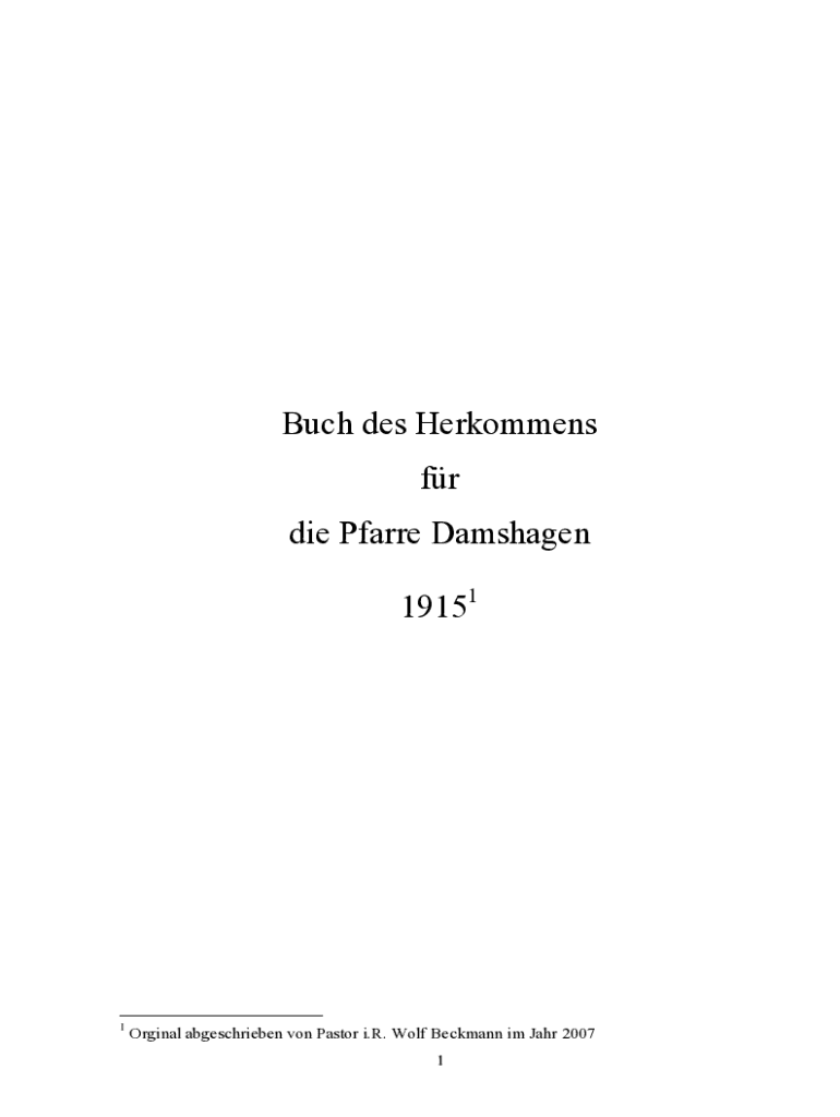 Was ist das Buch des Herkommens-Damshagen, Pastor Peek?