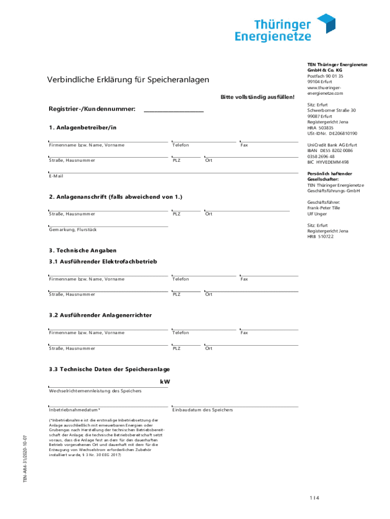 So füllen Sie ten-ar4-31verberklaerungspeicheranlagendoc aus