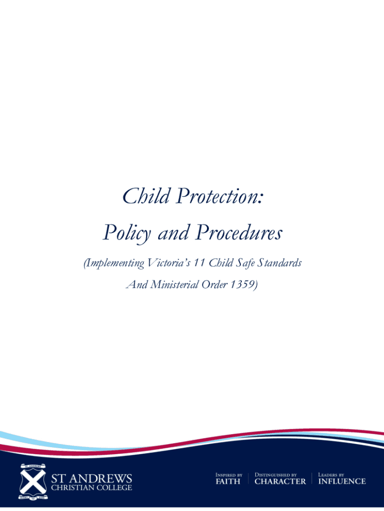 Child Protection: Policy and Procedures (Implementing Victoria's 11 Child Safe Standards And Ministerial Order 1359)PREAMBLE All policy, protocols and procedures flow from the St Andrews Christian