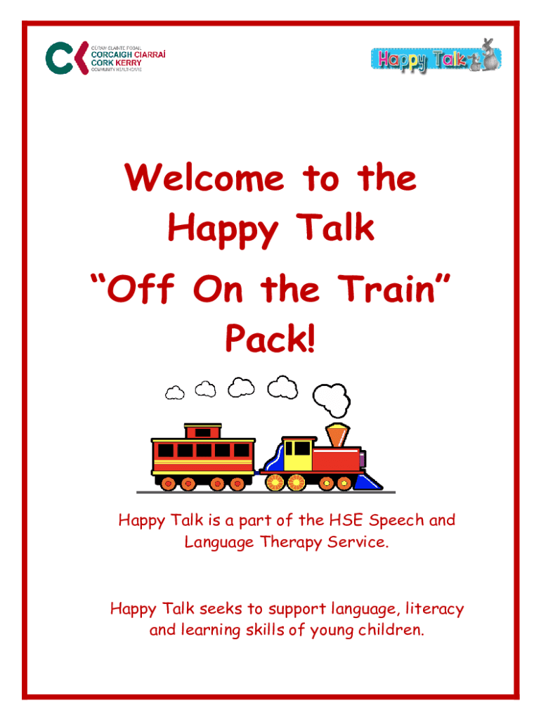 Welcome to the Happy Talk Off On the Train Pack! Happy Talk is a part of the HSE Speech and Language Therapy Service. Happy Talk seeks to support language, literacy and learning skills of young children.