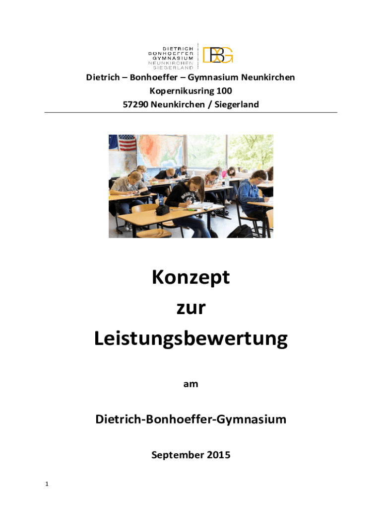 Dietrich Bonhoeffer Gymnasium Neunkirchen Kopernikusring 100 57290 Neunkirchen / SiegerlandKonzept our Leistungsbewertung amDietrichBonhoefferGymnasium September 2015 1Leistungsbewertungskonzept Neunkirchen,