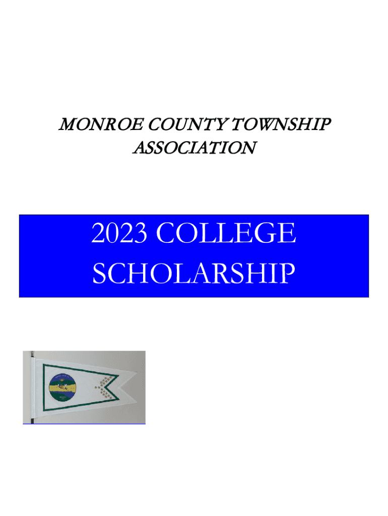 MONROE COUNTY TOWNS HIP ASSOCIATION2023 COLLEGE Scholarship Monroe County Township Association has established a Scholarship program for 2023. One or more (depending on funding available) applicants
