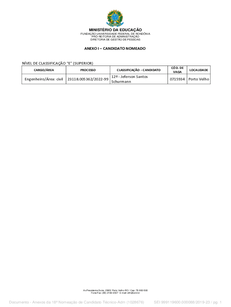 DIRECTORIAL DE GUSTO DE PESSOASANEXO I CANDIDATE NOMEADONVEL DE CLASSICAL E (SUPERIOR)