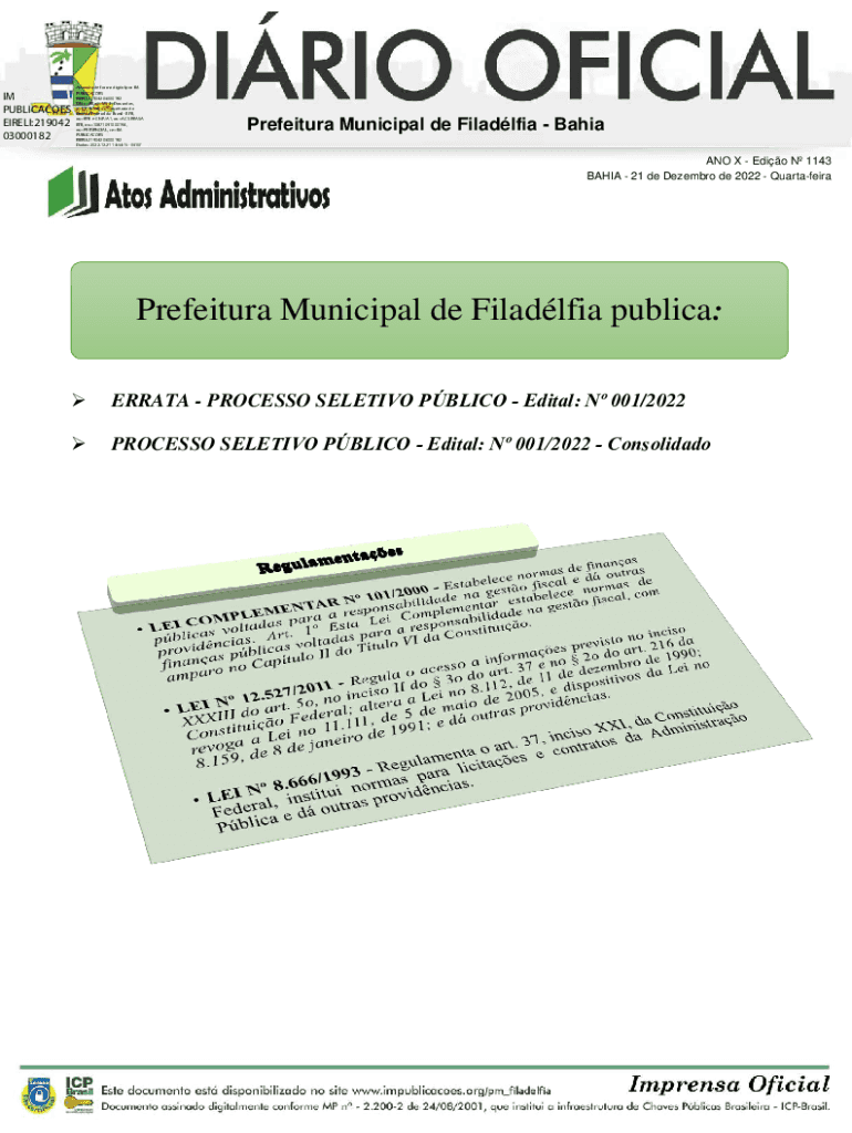 Obtenha o gratuito Prefeitura Municipal de Filadlfia publica: