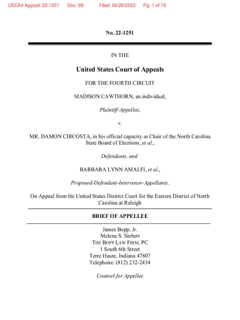 USCA4 Appeal: 221251Doc: 99Filed: 04/26/2022Pg: 1 of 76No. 221251IN Reunited States Court of Appeals FOR THE FOURTH CIRCUIT MADISON HAWTHORN, an individual, PlaintiffAppellee, v. MR. DAMON CIRCUIT,
