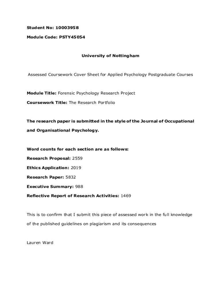 Get the free Applied Forensic Psychology with Placement MSc full-time - eprints nottingham ac