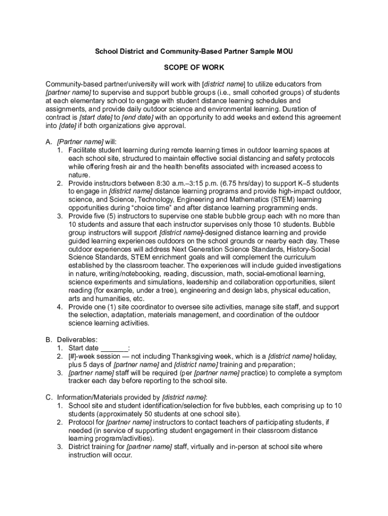 Get the free School District and Community-Based Partner Sample MOU