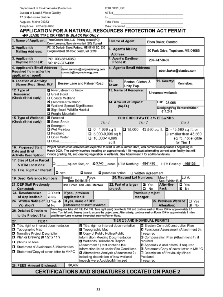 Department of Environmental Protection Bureau of Land & Water Quality 17 State House Station Augusta, Maine 04333 Telephone: 2072877688FOR DEP USE ATS #___ L ___ Total Fees: ___ Date: Received ___APPLICATION